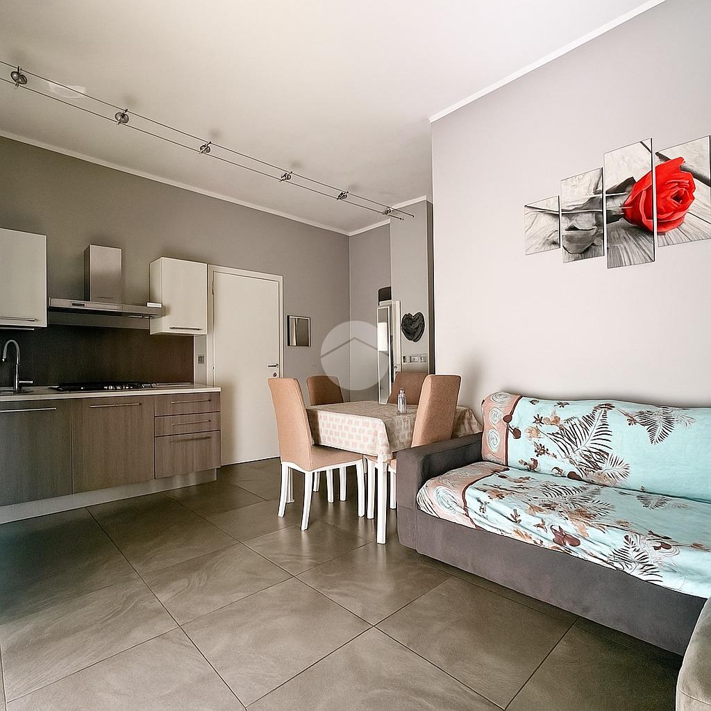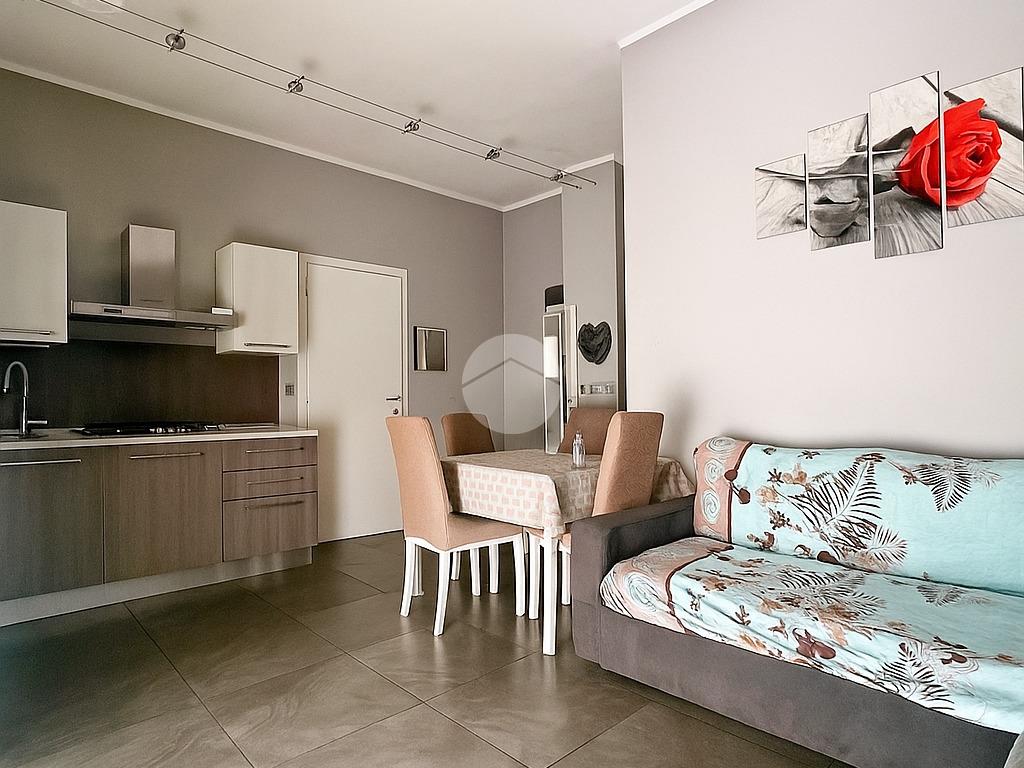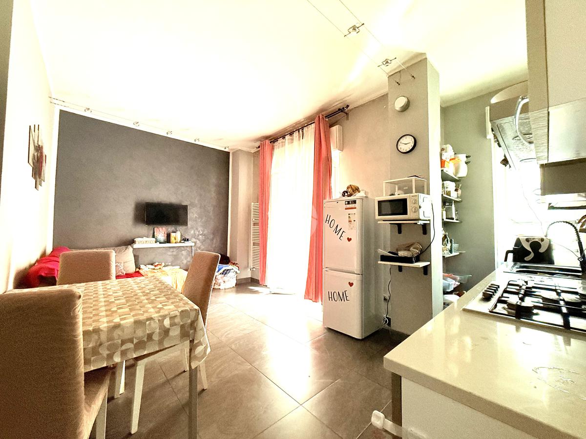 L’ingresso avviene tramite portoncino blindato che si apre direttamente su un accogliente soggiorno con parete cucina a vista, un ambiente moderno e funzionale perfetto per vivere la quotidianità in modo pratico e conviviale.