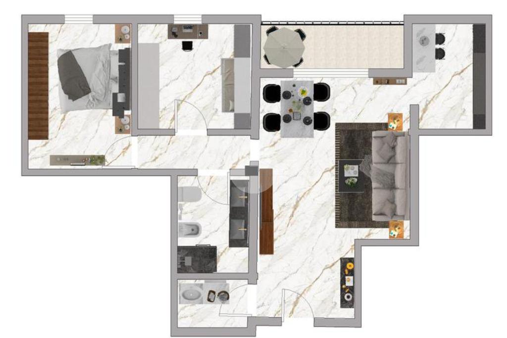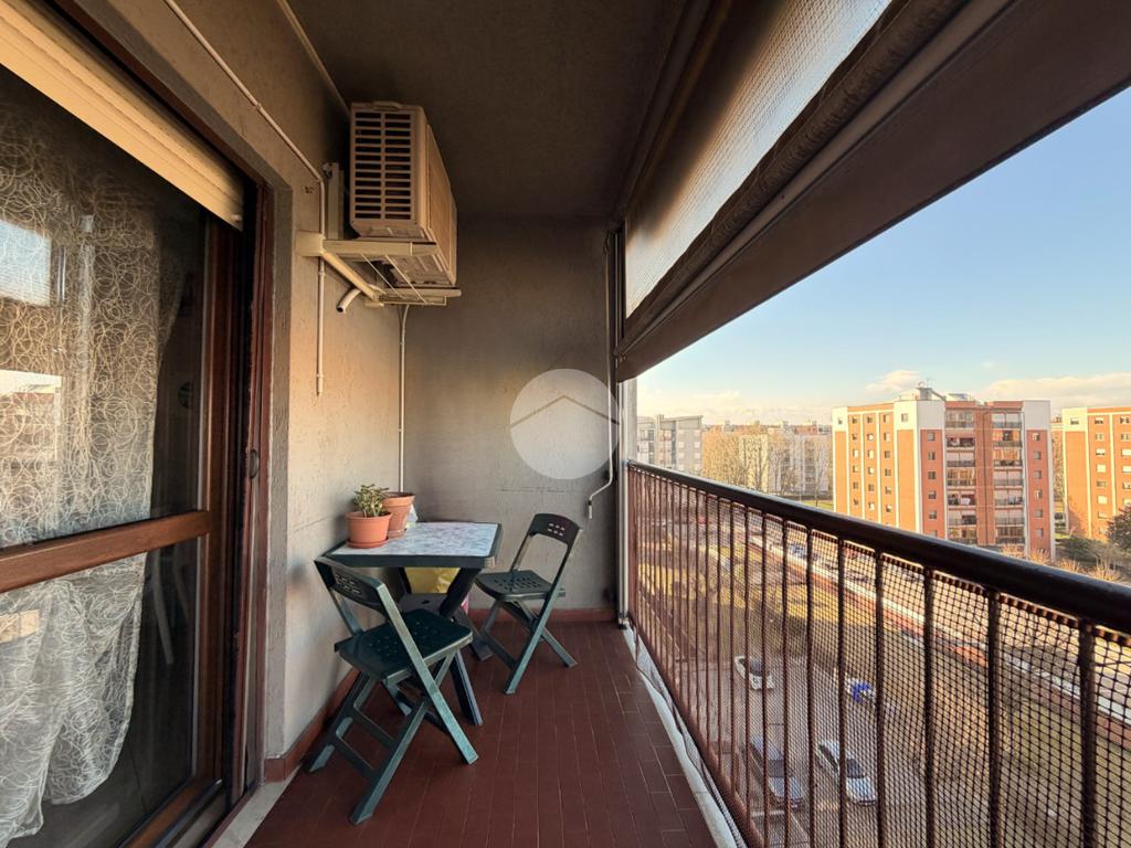 L’appartamento accoglie con un funzionale soggiorno affiancato dal cucinotto, spazi ben organizzati e pensati per la quotidianità. La zona notte è composta da due camere da letto ampie e luminose e da un servizio; è inoltre presente un comodo ripostiglio adibito a lavanderia, soluzione pratica per ottimizzare gli spazi. Il balcone terrazzato, vivibile e panoramico grazie al piano alto, rappresenta il valore aggiunto dell’abitazione, perfetto per pranzi all’aperto o momenti di tranquillità.